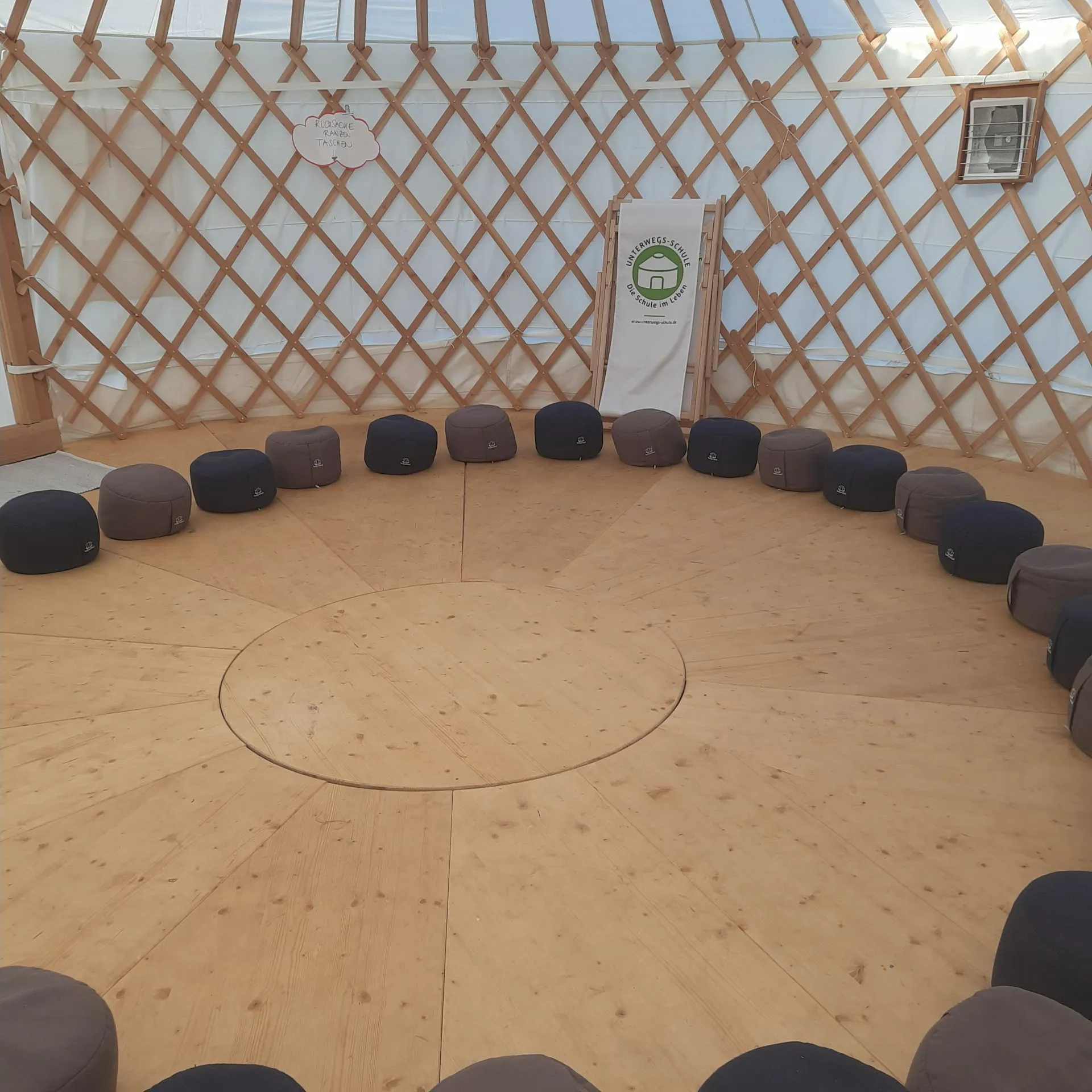 Florian Nohl und seine „Unterwegs-Schule“ haben uns vom 20.08.- 02.09.2025 besucht. Hinter dem Bildungshaus hat er mit vielen Helferinnen und Helfern an einem Vormittag seine Jurte aufgebaut und schon konnte es mit der Unterwegs-Schule losgehen.