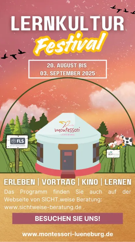 Das Montessori-Bildungshaus Lüneburg e.V. lädt gemeinsam mit der SICHT.weise Beratung vom 20. August bis zum 3. September zum LERNKULTUR.festival ein.